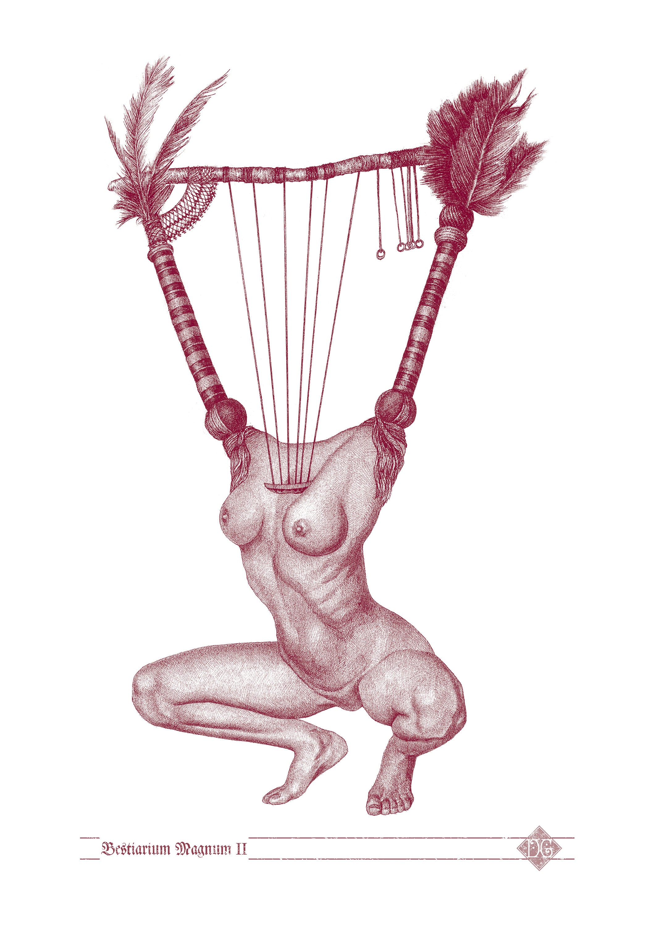 Nomen est omen. Oversexualizing to absurdity. Limited Editions of 29 high end Fine Art Giclée Prints, printed in Germany with museum grade, archival pigment inks on the finest acid free handmade papers. Available in four fresh, modern colours: berry, lila, mint, orange. Signed, numbered and stamped by the artist. The originals are black & white pen & ink drawings. Size: A4.
